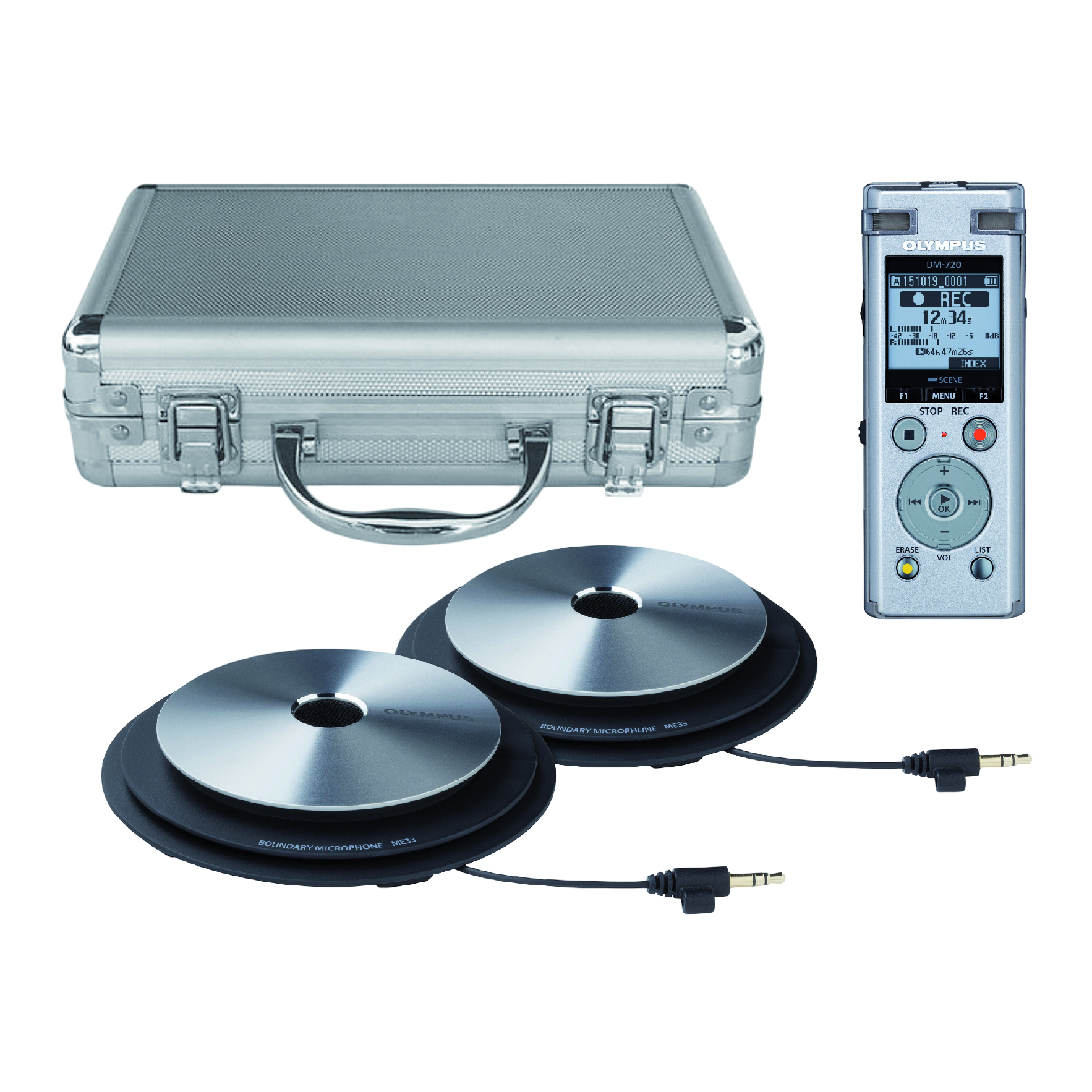 The DM-720 Boundary Mic Kit (Standard) is the replacement for the old Olympus Conference Kit – consisting of the DM-720 Digital Recorder, 2 x ME-33 boundary microphones, AC adaptorUSB AC Power cable  packaged in an aluminium Carry Case. This sleek, professional looking meeting solution will easily record up to 25 people in a boardroom environment.