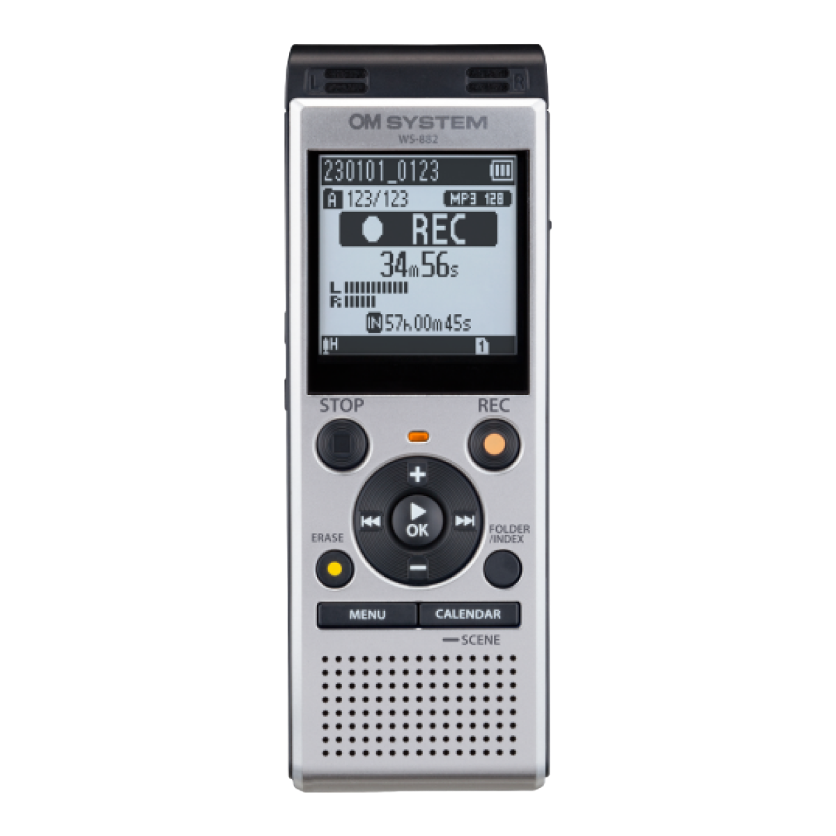 Regardless of your needs for either business or pleasure, the new OM System WS-882 digital voice recorder combines high-performance stereo recording with smart functionality. This not only makes it a pleasure to use but also easy to handle in any situation.